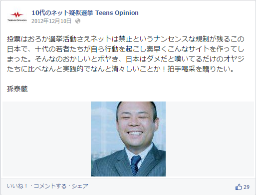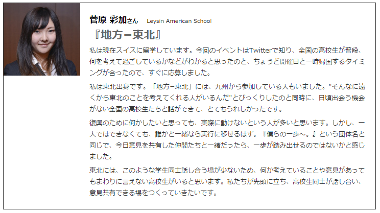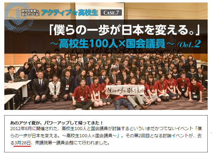「僕らの一歩が日本を変える」と一緒にプロジェクトをやっているTeensOpinionにメッセージを寄せてるわけで