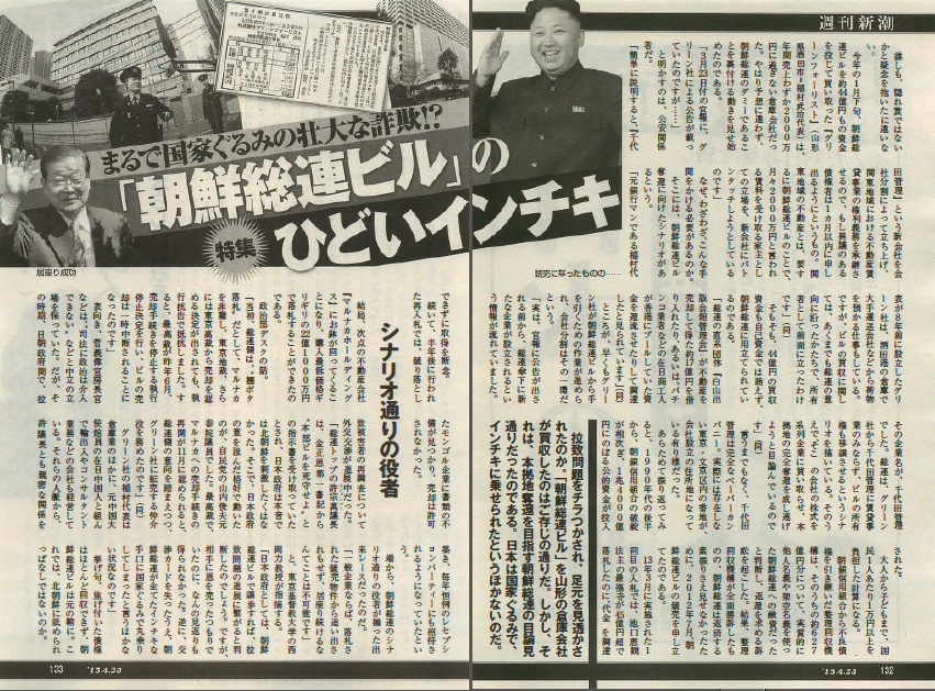 週刊新潮・まるで国家ぐるみの壮大な詐欺!?「朝鮮総連ビル」のひどいインチキ
