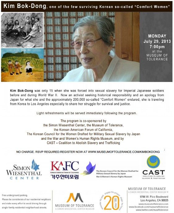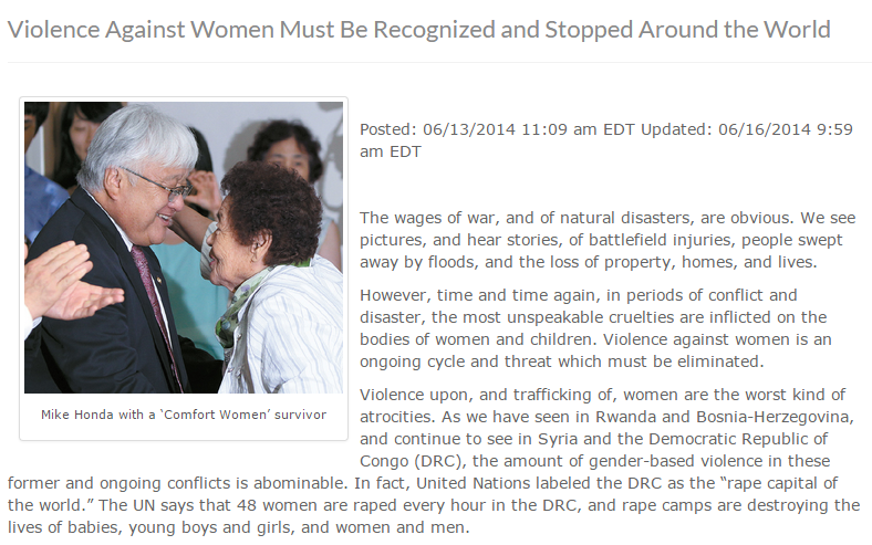 私たちの教室では、日本、韓国、中国他の国からの学生が、この難しい問題について、互いに敬意を払いながら誠実に話し合っています。彼らの世代は、私たち が残す過去の記録と歩むほかないよう運命づけられています。性暴力と人身売買のない世界を彼らが築き上げるために、そしてアジアにおける平和と友好を進め るために、過去の過ちについて可能な限り全体的で、でき得る限り偏見なき清算を、この時代の成果として共に残そうではありませんか。